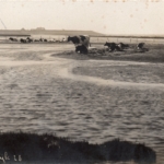 Hij aarzelde niet, voor er iemand anders met de kaars vandoor zou gaan trok hij zijn kleren uit en waadde het koude water in. Hij kreeg de kaars te pakken en sleepte die bibberend naar de wal. Net had hij zich een beetje droog gewreven en zijn overall weer aangetrokken, toen er een bekend gezicht met daarop een politiepet boven op de dijk verscheen. Die pet en dat gezicht had hij liever niet gezien. De agent was blij met al het werk dat Siemen had gedaan, nu hoefde hij niet het koude water in. En koud was dat water in april 1945, maar hij moest die kaars echt in beslag nemen. Want strandjutten dat mocht niet……